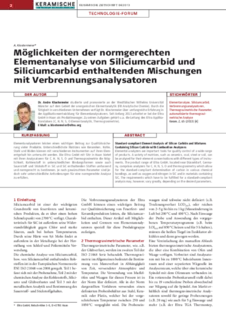 Elemental analyzers are important tools for quality control of a wide range of products. A variety of matrices, such as ceramics, coal, steel or soil, can be analyzed for their element concentrations with different types of instruments. The product range of Eltra GmbH, located near Düsseldorf, Germany, comprises analyzers for C, H, N, S, O and thermogravimetry which allow for the standard-compliant determination of carbon in various chemical bondings, as well as oxygen and nitrogen in SiC and in materials containing SiC. The requirements which have to be fulfilled for a standard-compliant analysis may, however, vary greatly, depending on the desired parameters.