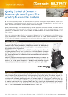 Elemental analysers based on combustion technology are a useful addition to XRF analysis for the quality control of cement and related products, ensuring fast, precise and reliable determination of carbon and sulphur. With its offering of analyzers using resistance or induction furnaces or both, ELTRA covers a wide range of applications for C and S determination in organic and inorganic samples. The product range is ideally suited to the variety of analytical applications in a cement plant.
